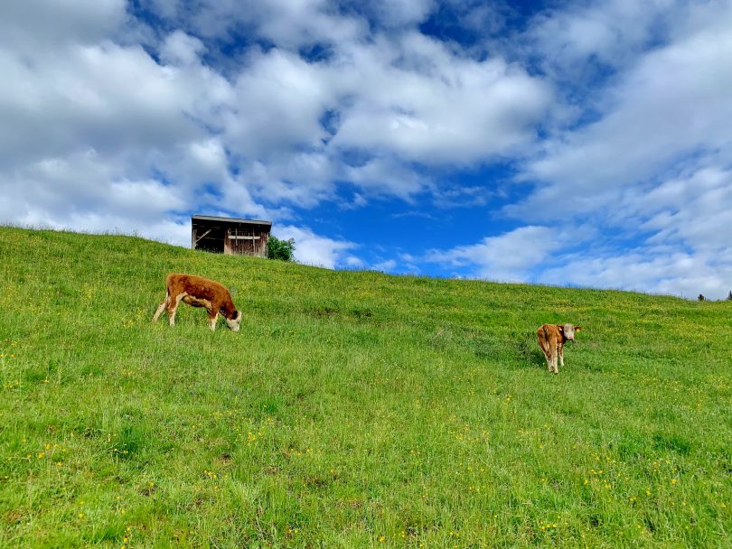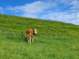 Eigentlich ist jeder Sonntag ein guter Grund, sich zurückzulehnen und nach vorne zu schauen. In diesen schwierigen Corona-Zeiten soll der Sonntag als Kraftquelle für die kommende Woche ganz besonders seine Gültigkeit haben. Symbolisch für diese Gedanken und Botschaft mögen diese aktuellen Bilder mit weiß-blauem Himmel und von zufriedenen Jungkühen auf einer frisch-grünen Weide in der Gemeinde Prien sein – auch wenn sie zum Teil zurückschauen, so richten sie sich in ihrem Verhalten nach vorne.