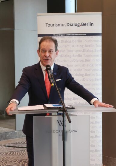 Die „Zukunft der Berliner Spitzenhotellerie“ war Thema des TourismusDialog.Berlin beim Medientreff im Hotel Waldorf Astoria. Hierzu berieten die Gesprächspartner Burkhard Kieker, Geschäftsführer visitBerlin, Gregor Andréewitch , General Manager Waldorf Astoria, und Bastian Roet, Generalsekretär der Vereinigung COCKPIT. Moderiert wurde der Medientreff von Ewald König, Chefkorrespondent des Berliner Korrespondentenbüros.