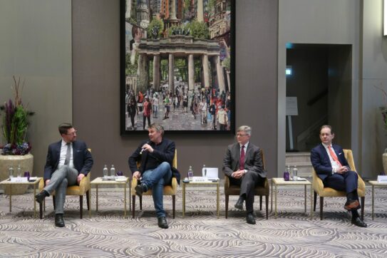 Zum Auftakt gab Gregor Andreewitch einen Einblick in die Historie des Hotels Waldorf Astoria. Es entstand gegen Ende des 19. Jahrhunderts aus dem Zusammenschluss von zwei Spitzenhotels in New York. Im Jahr 1972 wurde das Waldorf Astoria von der Hilton-Hotelkette übernommen, gegründet 1919 von Conrad Hilton. Die Vision von Hilton war, dass gerade Reisen die Kulturen der Welt verbindet und somit die Welt verbessert, so Andréewitch. In Deutschland nahm das erste Waldorf Astoria Hotel 2013 in Berlin den Betrieb auf, im „Zoofenster“, einem imposanten Hochhaus gegenüber dem Bahnhof Zoologischer Garten. Burkhard Kieker erinnerte sich an die Antwort, die er vor 10 Jahren vom damaligen CEO der Hilton-Gruppe, Mr. Brown, auf die Frage bekam „Warum gerade Berlin“. „Berlin ist die letzte Weltstadt, die dabei ist, sich zu entwickeln“. So war auch die Eröffnung von Waldorf Astoria als Luxusmarke mit 5 Sternen praktisch ein Wendepunkt für Berlin. Es trug für die Stadt dazu bei, 23 Jahre nach der Teilung seine Identität als Metropole wieder zu finden, so Kieker. Mit mittlerweile 27 5-Sterne-Hotels hat Berlin die Erwartungen durchaus erfüllt, die der internationale Tourismus an eine Weltstadt stellt. Die Zahl der Übernachtungen erreichte 2022 nahezu 80 Prozent des Vorkrisenniveaus. Nach Meinung von Kieker hängt die Zukunft der Berliner Spitzenhotellerie in erster Linie von Messen und Kongressen in der Bundeshauptstadt ab. Denn in der gehobenen Hotellerie sind die Gäste hauptsächlich Geschäftsreisende und Messebesucher. In den letzten Jahren, besonders während der Pandemie war die wirtschaftliche Lage im Hotelgewerbe nicht immer einfach. Inzwischen ist es jedoch entspannter, merkte Burkhard Kieker optimistisch an. Geboten ist auch eine ordentliche Willkommenskultur. Die Anreise sollte den Gästen so angenehm wie möglich gestaltet werden, so Bastian Roet von der Vereinigung Cockpit. Leider gibt es noch viel zu wenig direkte Flugverbindungen von und nach Berlin. Insbesondere fehlt es noch an Langstreckenverbindungen, um die Stadt mit der Welt zu verbinden. Wünschenswert wäre auch, wenn die Lufthansa ihr Aviation Center nach Berlin verlagern würde. Zur Nachhaltigkeit warf Burkhard Kieker von visitBerlin ein, dass man auf manche innerdeutsche Flugverbindungen durchaus verzichten und stattdessen auf die Bahn setzen könnte. Schließlich waren sich die Gesprächspartner einig, dass sich die Spitzenhotellerie in der Metropolregion Berlin nach der letzten Krise gut erholt hat und für die Herausforderungen der Zukunft gewappnet ist.