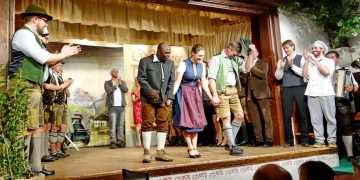 Nachdem zusätzlich zu den ersten sechs Aufführungsterminen vom Grainbacher Bauerntheater aufgrund der starken Nachfrage bereits ein 7. Aufführungstermin mit Sonntag, 7. Januar vereinbart worden ist, hat sich der Trachtenverein Hochries-Samerberg entschlossen, eine weitere, dann 8. Vorstellung am Freitag, 5. Januar anzubieten. Wie Trachtenvorstand Fred Wiesholzer und Theaterleiter Peter Wiesholzer senior bei der erfolgreichen Premiere mitteilten, wird auch diese Aufführung um 20 Uhr im Saal des Gasthauses Maurer beginnen. Für alle Aufführungen am 28./29.12. sowie nunmehr am 2./3./4./5. und 7. Januar werden an der Abendkasse noch einige Restkarten bereitgehalten. Die Karten für den Zusatz-Termin am Freitag, 5. Januar gibt es ab Freitag, 29. Dezember in der Raiffeisenbank in Törwang.