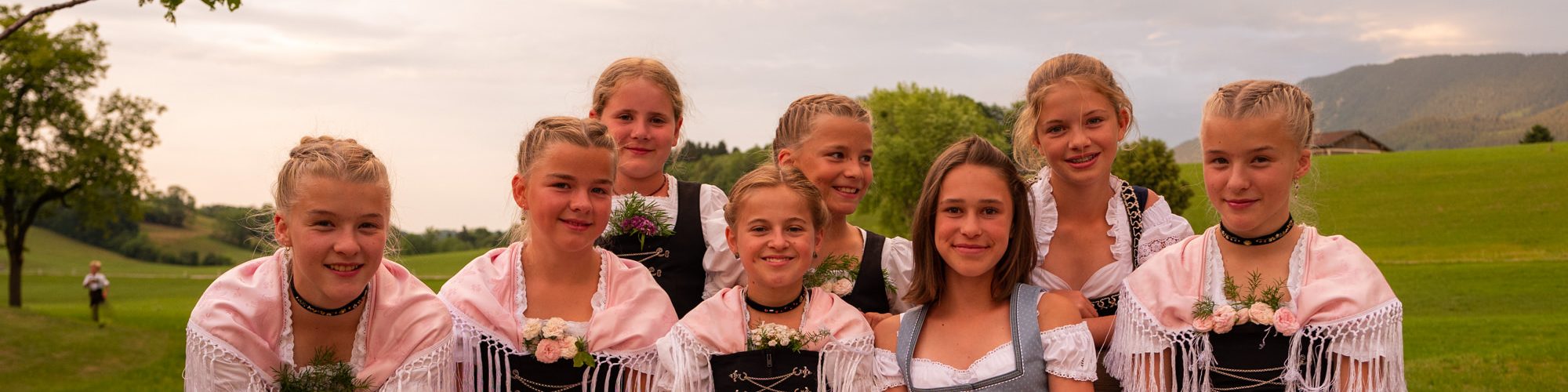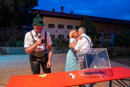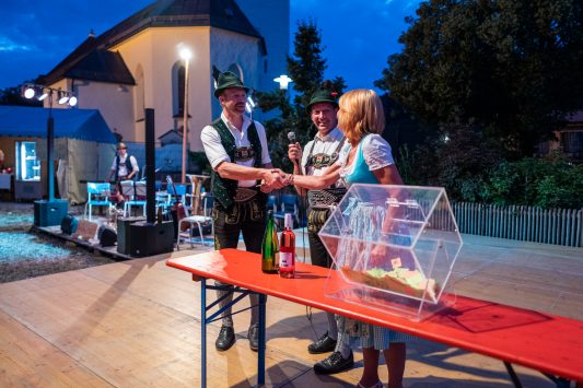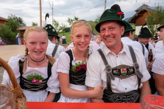 Gleich zweimal Glück mit dem Wetter hatte der Trachtenverein „Almenrausch“ Rossholzen als er in die Mitte des Dorfes eingeladen hatte. An beiden Abenden füllten sich die Sitzbänke nahe des Maibaumes und der Freibühne von Leuten, die sich an einem lauen Sommerabend ebenso erfreuen wollten wie an Weisen der Jungen Hinterberger Musikanten und der Wieslbergmusi. Dazu kamen Auftritte der Dirndl und Buam aus den Reihen der Kinder-, Jugend- und Aktivengruppe des gastgebenden Vereins sowie lautstarke Einlagen der Baschtler Goaßlschnalzer. Erfrischende Getränke von der Flötzinger-Schenke und Brotzeiten vom Grill sowie Kaffee und Kuchen rundeten das Dorffest-Angebot ab. Eine Gaudi war am zweiten Abend die Verlosung von Preisen, dabei gab es vom Verein einen 100-Euro-Gutschein für eine Sau, von Marissa Steegmüller ein Faß Flötzinger-Bier sowie weitere Wein- und Bierpreise.