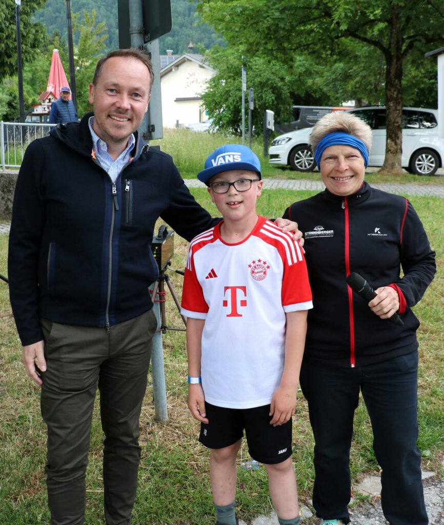 Knapp eine Viertelstunde nach dem Start war Johann Bauer aus Sachrang wieder im Ziel bei der Tourist Info Aschau zurück. Der Neunjährige lief die 3000 Meter entlang der Prien, kehrte als erster der 83 gemeldeten Läufer von der Drei-Kilometer-Strecke zurück und überquerte die Ziellinie. Zum zweiten Aschauer Bankerllauf luden das „Lauffeuer Chiemgau“ und die Tourist Info Aschau gemeinsam ein. Gegenüber der Vorjahresveranstaltung hat sich die Teilnehmerzahl fast verdoppelt. Drei Strecken standen den Sportlerinnen und Sportlern entlang der Prien zur Auswahl; je nach Wunsch, Laune und Können wählten die Läufer aus dem Angebot drei, fünf oder sieben Kilometer Streckenlänge. Tourismus Chef Herbert Reiter übernahm die Schirmherrschaft über diesen Lauf, der weitgehend ohne Zeitnahme ablief; nur so zum Spaß an der Freude wurde gelaufen, gegangen und gewalkt – je nach dem Können und der Kondition der Einzelnen. Gemeinsam mit der Organisatorin Christine Heckel vom Lauffeuer Chiemgau startete Herbert Reiter das Feld und die Läufer – unter ihnen auch der zweite Bürgermeister der Gemeinde Aschau Michael Andrelang – machten sich auf die Strecken. Gemeinsam mit den 83 Läufern waren auch drei Rollifahrer aus dem Benedetto Menni Nest mit ihren Begleitern, ein Kinderwagen und ein Hund unterwegs. Der Aschauer Bankerlweg feiert in diesem Jahr sein zehnjähriges Bestehen, zum Betrachten der vielen Bankerl auf der Strecke oder gar zum Niedersitzen und Ausrasten auf einem der Bankerl war natürlich keine Zeit. Ein bissel Ehrgeiz war schon bei allen da, nicht als Schlusslicht im Ziel einzulaufen. Dr. Tobias Stiebler schloss die Sieben-Kilometer-Runde als Schnellster ab. Einzeln, in kleinen Gruppen oder größeren Pulks kamen schließlich alle im Ziel an. Nach einer knappen Stunde waren auch die letzten Geher und Walker wieder an der Tourist Info zurück. Der Reinerlös der Veranstaltung geht an das Benedetto Menni Nest in Aschau.