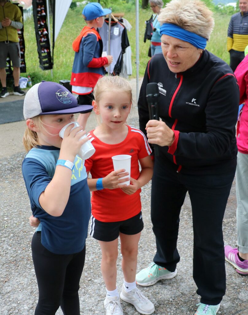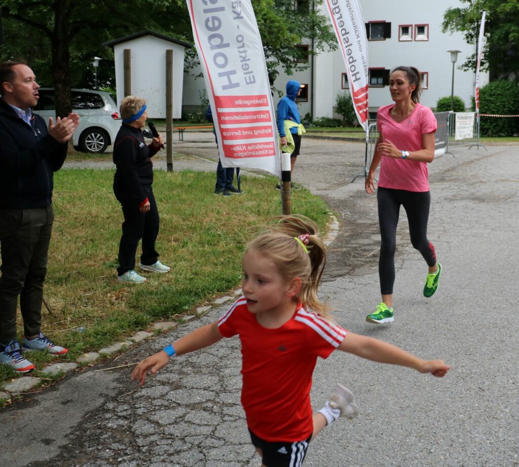 Anna Lena (7) und Vevi (5) waren die beiden jüngsten Läuferinnen im Feld der 83 Läuferinnen und Läufer und kamen von der 3000 Meter Strecke nach 20 Minuten zurück
