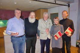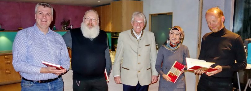 1. Von links: Andreas Sargant (Neuapostolische Kirche), Karl-Friedrich Wackerbarth (Evangelische Christusgemeinde), Dr. Herbert Reuther (Vorsitzender PrienPartner e.V.), Muslime Züleyha Düzenli und Klaus Hofstetter (Katholische Pfarrgemeinde).