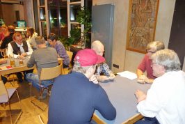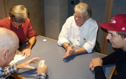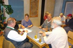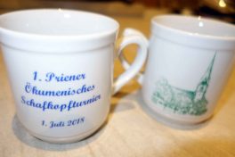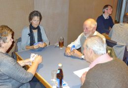 Die Initiative zum Ökumenischen Schafkopfturnier ging vom Priener Gewerbeverein PrienPartner aus. Dessen Vorsitzender Dr. Herbert Reuther würdigte die konfessionsübergreifende Zusammenkunft als Teil und Beispiel eines guten gemeinsamen Miteinanders innerhalb der Lebensgemeinschaft und Gläubigen in Prien und Umgebung. Mit einem Buchpräsent („Von Adam bis Mohammed – Bibel und Koran im Vergleich“) bedankte sich Dr. Reuther bei Hausherrn und Gastgeber Pfarrer Karl-Friedrich Wackerbarth, bei Pfarrer Klaus Hofstetter, bei Bezirksevangelist Andreas Sargant von der Neuapostolischen Kirche sowie bei Muslime Züleyha Düzenli. Alsdann übergab er die Spielleitung an Norbert Kerl aus Bad Endorf. Dieser erklärte nicht nur die Spielregeln für die beiden Halbzeiten, zu denen die Tischbesetzungen jeweils ausgelost wurden, sondern auch die Verwendung der Startgelder. Diese wurden an die Ökumenische Notfallseelsorge im Landkreis Rosenheim zur Verfügung gestellt. Die Startgelderlöse werden von den Priener Rotariern und von den PrienPartnern noch mit Spenden ergänzt, so dass für die Notfallseelsorge der Betrag von 1.000 Euro zur Verfügung gestellt werden kann. Wie Helmut Franke als Vertreter der Notfallseelsorge informierte, wird diese 180 mal im Jahr, also an fast jedem zweiten Tag angefordert. Letztlich gab es für alle Teilnehmer eine Tasse als Erinnerungspreise, zudem wurden die Besten mit Tischpreisen und mit Gutscheinen aus der Priener Geschäftswelt und Gastronomie belohnt. Zu den Mitspielern, die im Mittelfeld landeten, gehörten unter anderem Priens Zweiter Bürgermeister Hans-Jürgen Schuster sowie Alt-Bürgermeister Klaus Daiber aus Bernau.